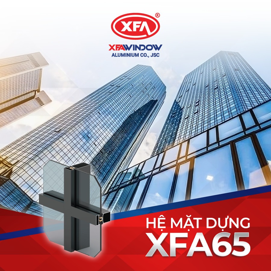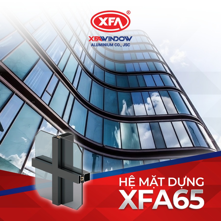 Nhôm hệ mặt dựng XFA65 là loại nhôm sử dụng trong xây dựng các công trình vách kính khổ lớn. Cấu tạo bao gồm thanh nhôm profile có bản rộng 65mm, kết nối với nhau để tạo thành các vách kính đan xen. Kết hợp với kính lớn để tạo ra nhiều kiểu dáng vách dựng khác nhau như gấp khúc, lượn sóng, uốn cong, nẹp ngang, nẹp dọc, và nhiều kiểu khác.