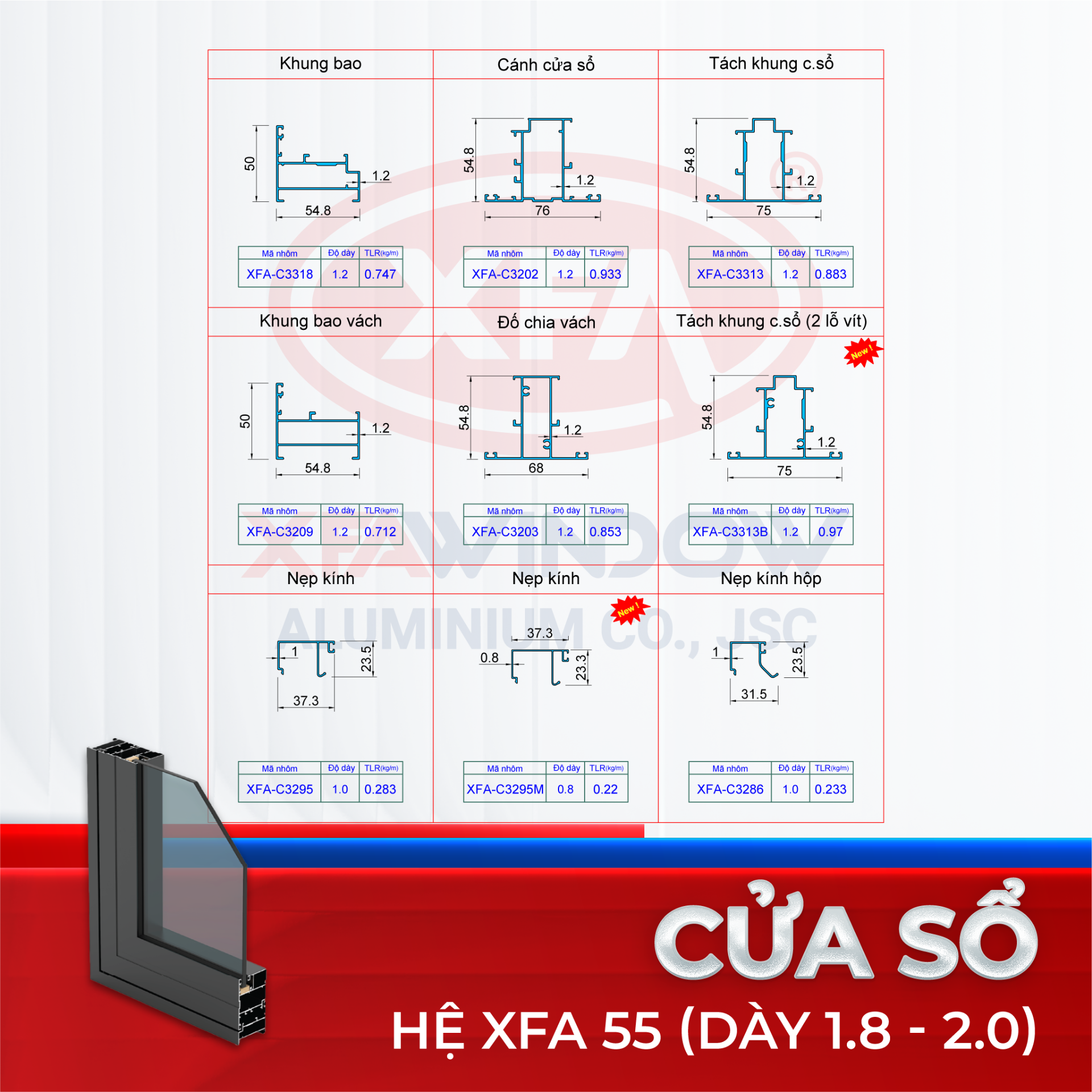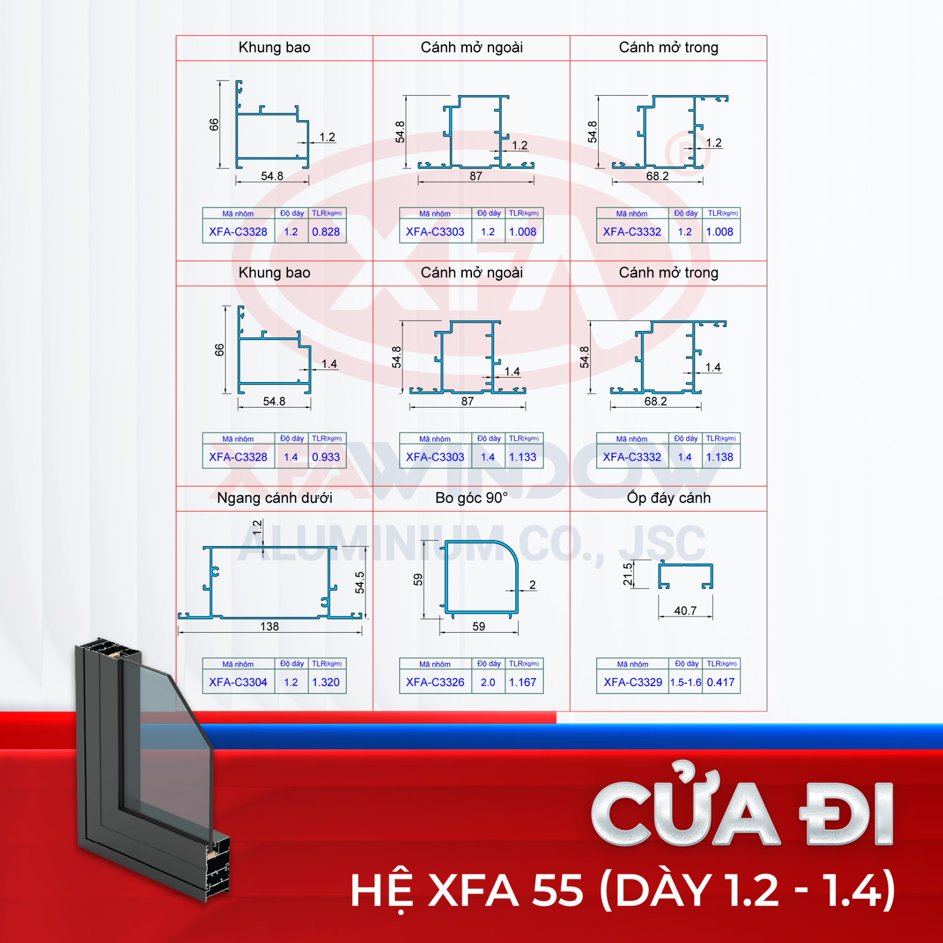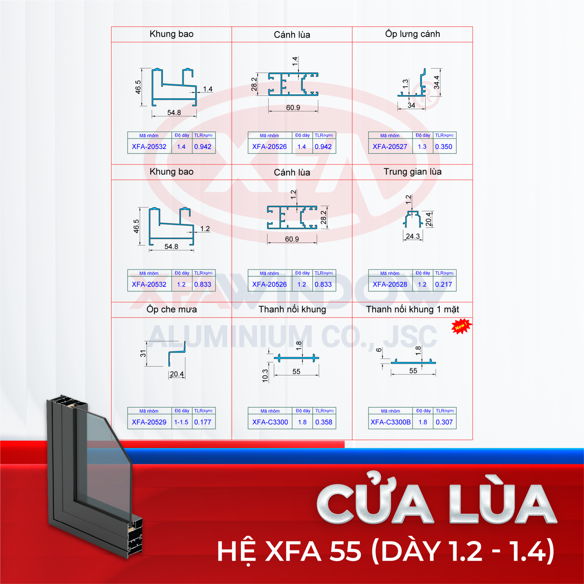 Sản phẩm Nhôm XFA-55 được Nhà Máy Nhôm Xingfa Window sản xuất, bắt kịp xu hướng thiết kế hiện đại ngày nay trong ngành sản xuất thi công cửa nhôm kính cao cấp.
