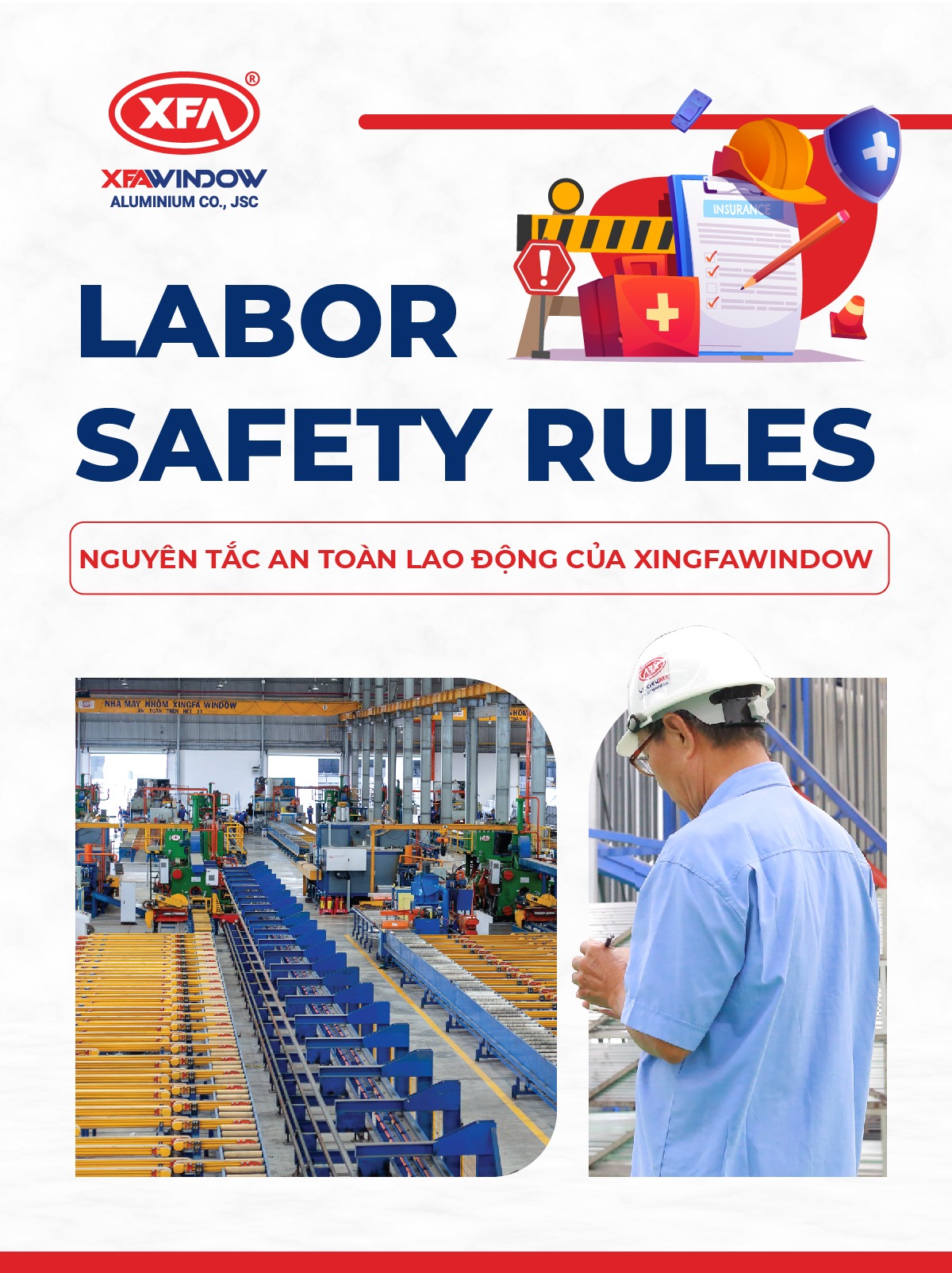 Nhằm tránh những rủi ro và tai nạn lao động ngoài ý muốn, nhà máy NHÔM XINGFAWINDOW luôn thực hiện nghiêm túc và đảm bảo các nguyên tắc an toàn trong lao động sản xuất. Cụ thể như sau: