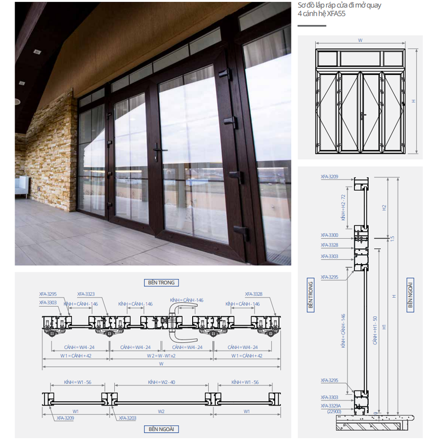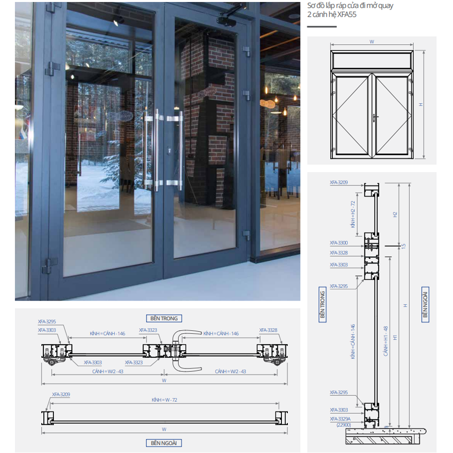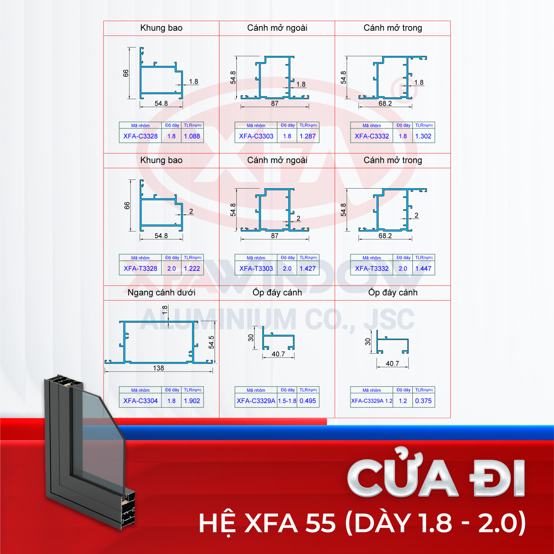 - Nhôm Xingfa XFA 55 mang đến một không gian Châu Âu hiện đại cùng phong cách sang trọng. Ứng dụng trên cửa ra vào, cửa sổ mở, cửa ban công,...