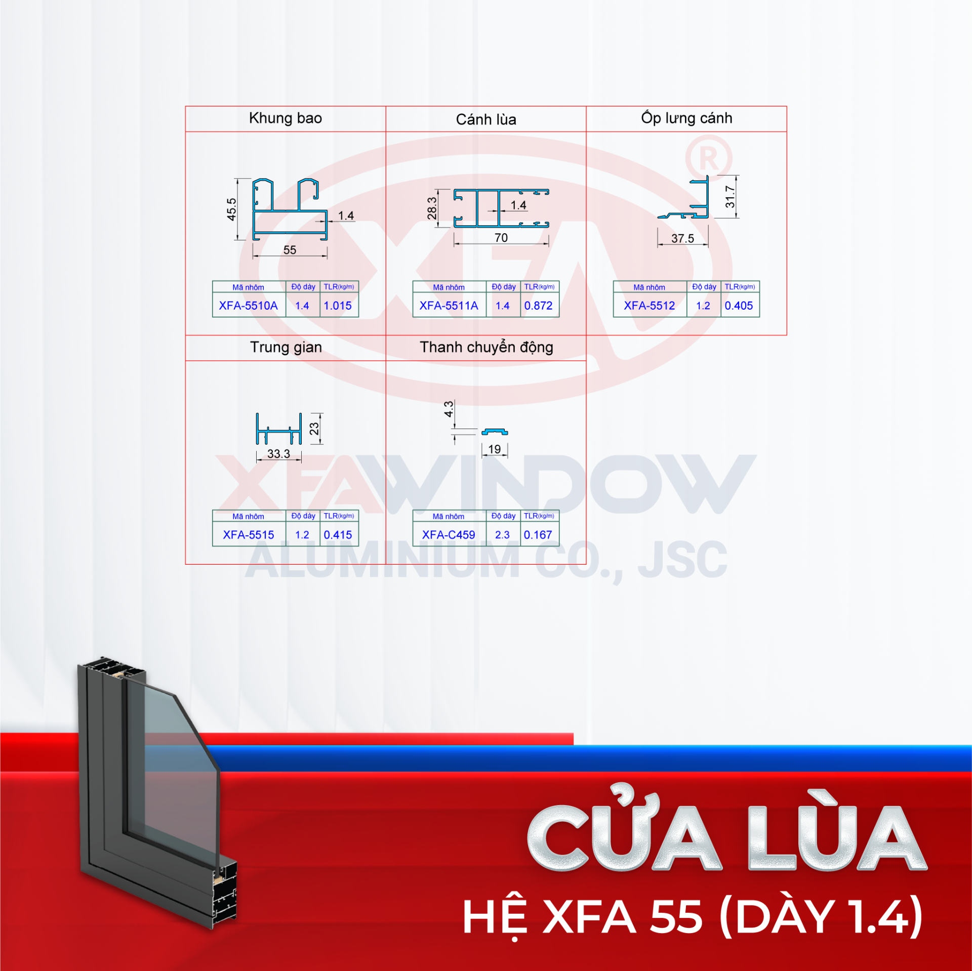 Sản phẩm Nhôm XFA-55 được Nhà Máy Nhôm Xingfa Window sản xuất, bắt kịp xu hướng thiết kế hiện đại ngày nay trong ngành sản xuất thi công cửa nhôm kính cao cấp.